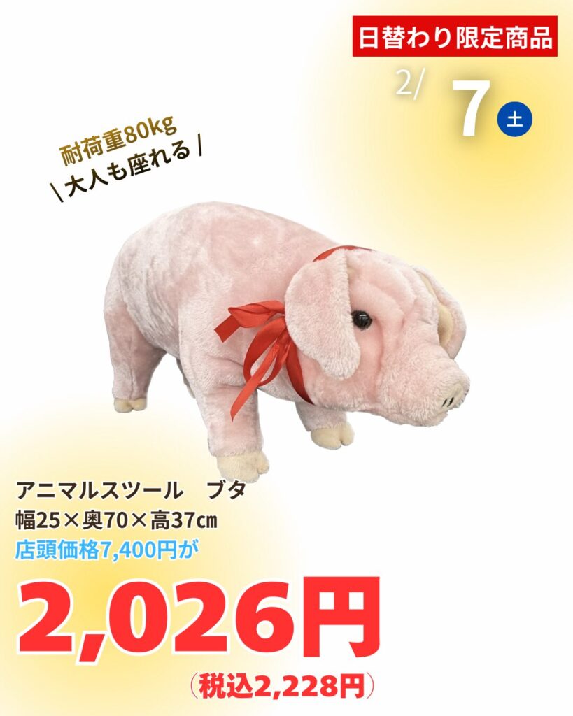 2月 7日(土) アニマルスツール ブタ 税抜 2,026円