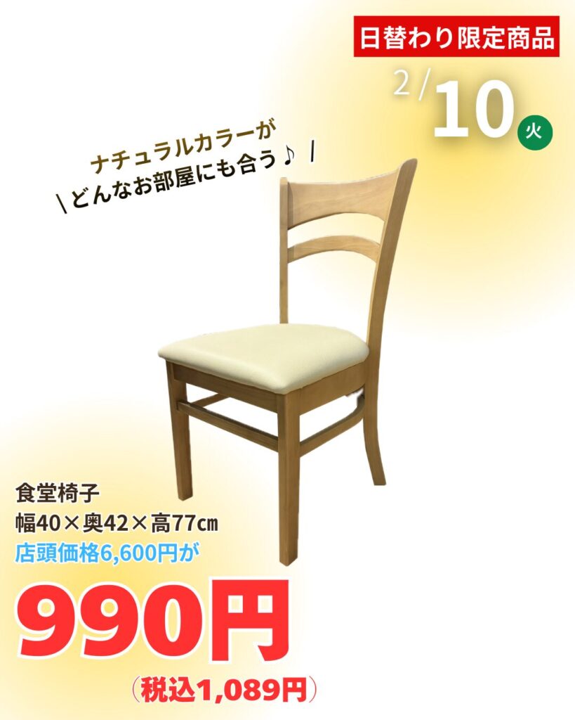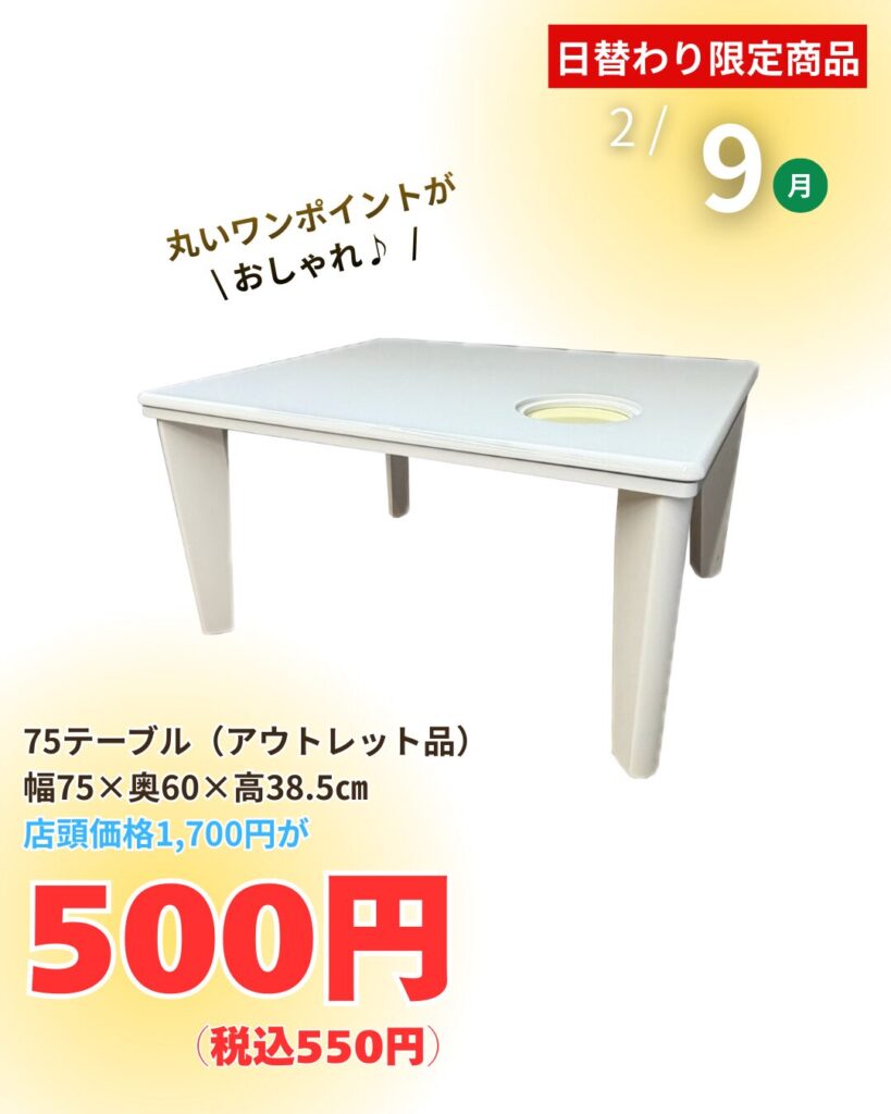 2月 9日(月) 75テーブル(アウトレット品) 税抜 500円