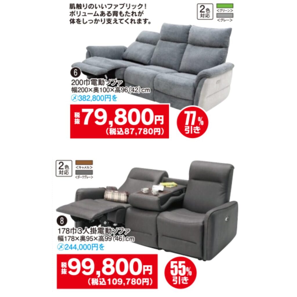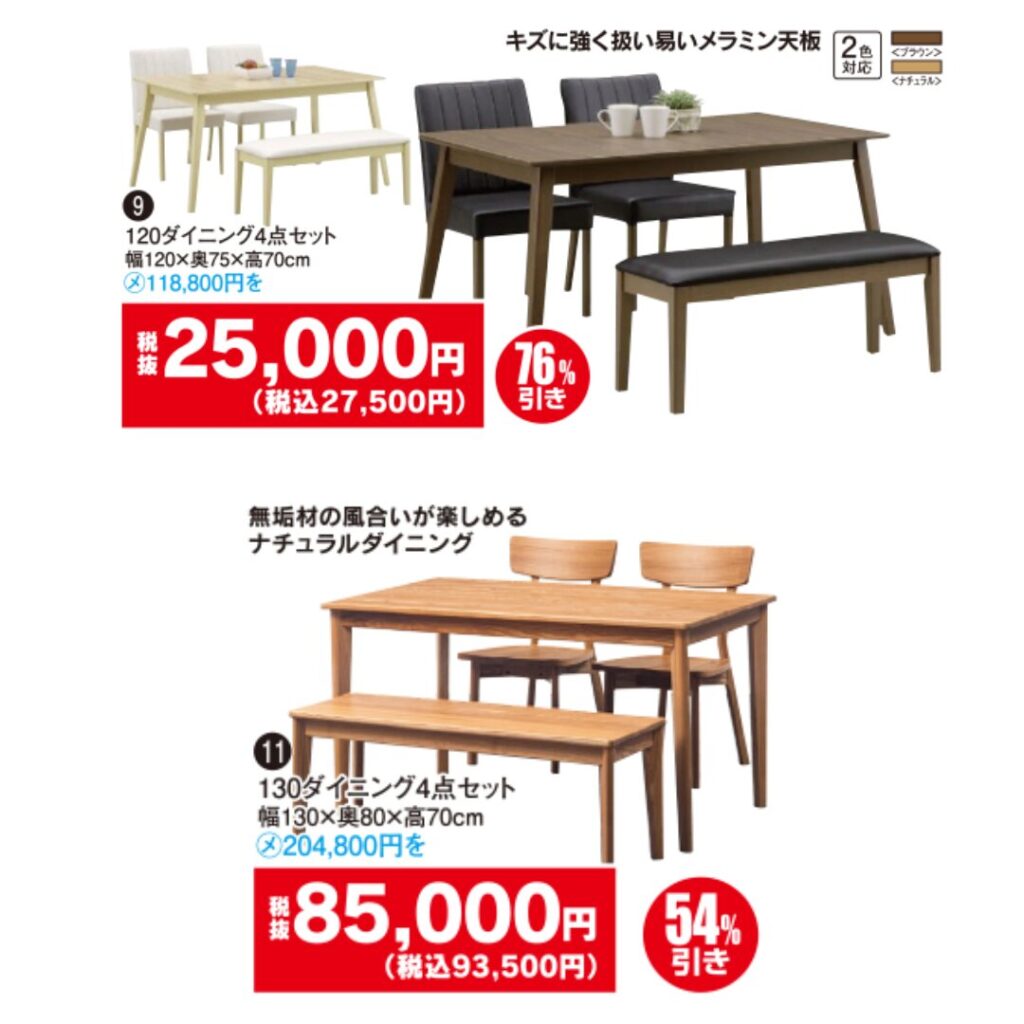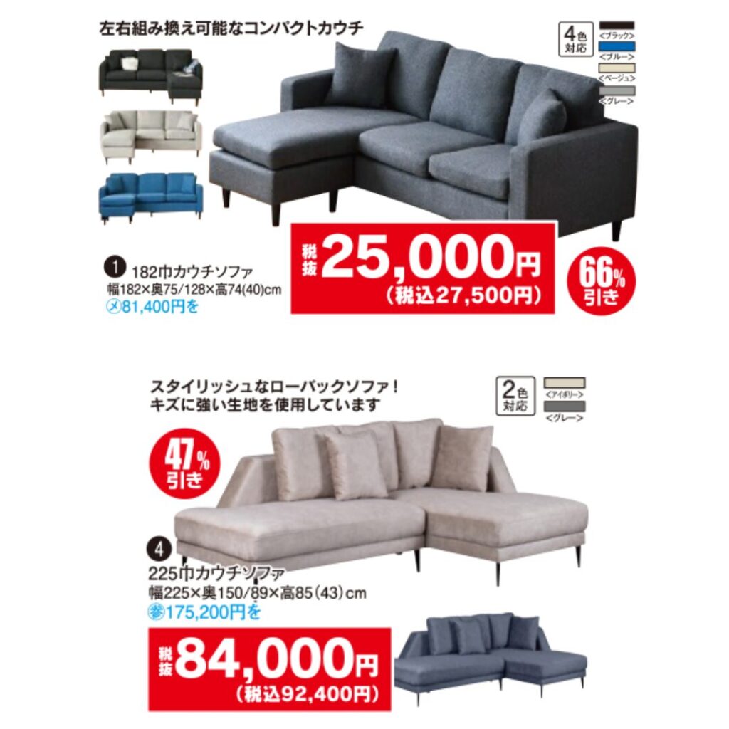 ソファ・ダイニングセット・リクライニングチェアなどの人気家具が、最大半額クラスの特価で登場。数量限定のため、気になる商品はお早めにチェックしてください👀✨