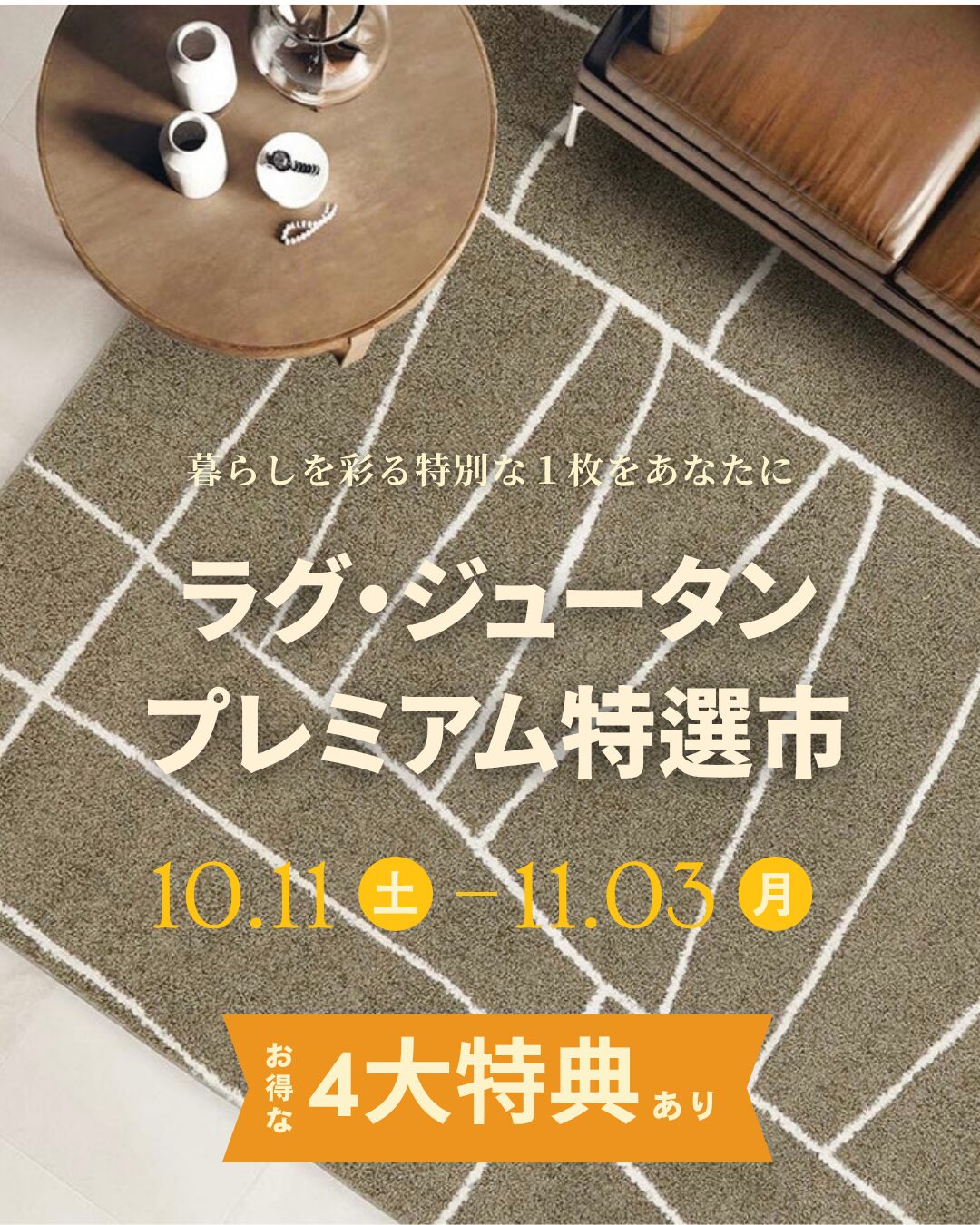 秋のお部屋づくりにぴったりのラグやジュータンが勢ぞろいします。