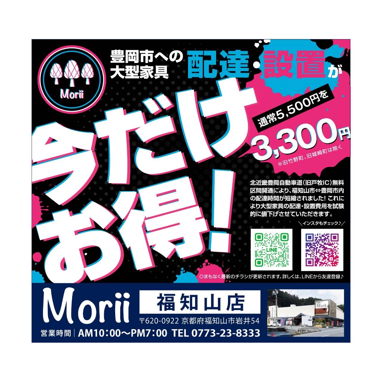 Morii福知山店では、豊岡市への大型家具の配達・設置料金を期間限定で値下げいたしました!😄