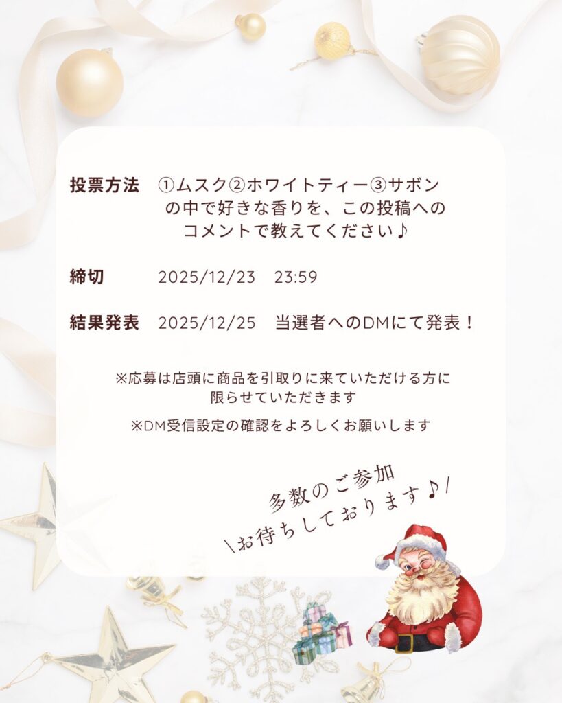 12/25にインスタグラム内DMにてご連絡いたします🎅
